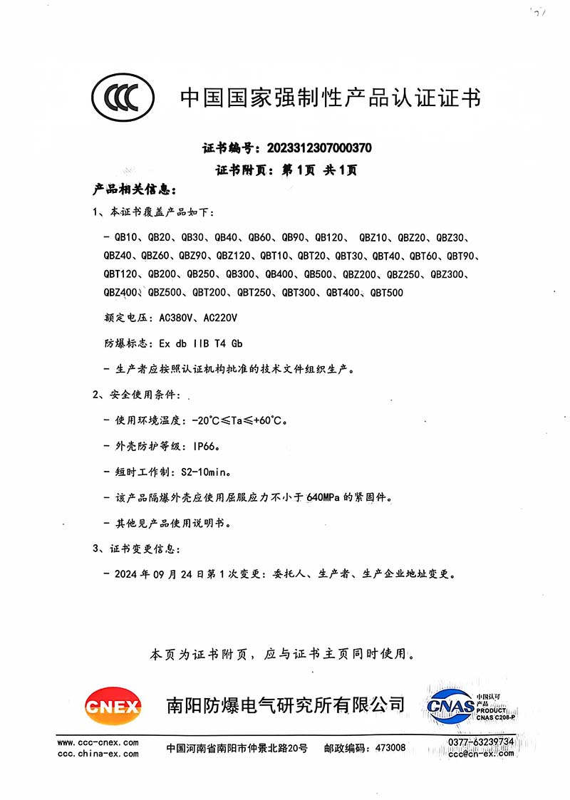 隔爆型QB QBZ QBT 220380中國國家強制性產(chǎn)品認(rèn)證證書107.1