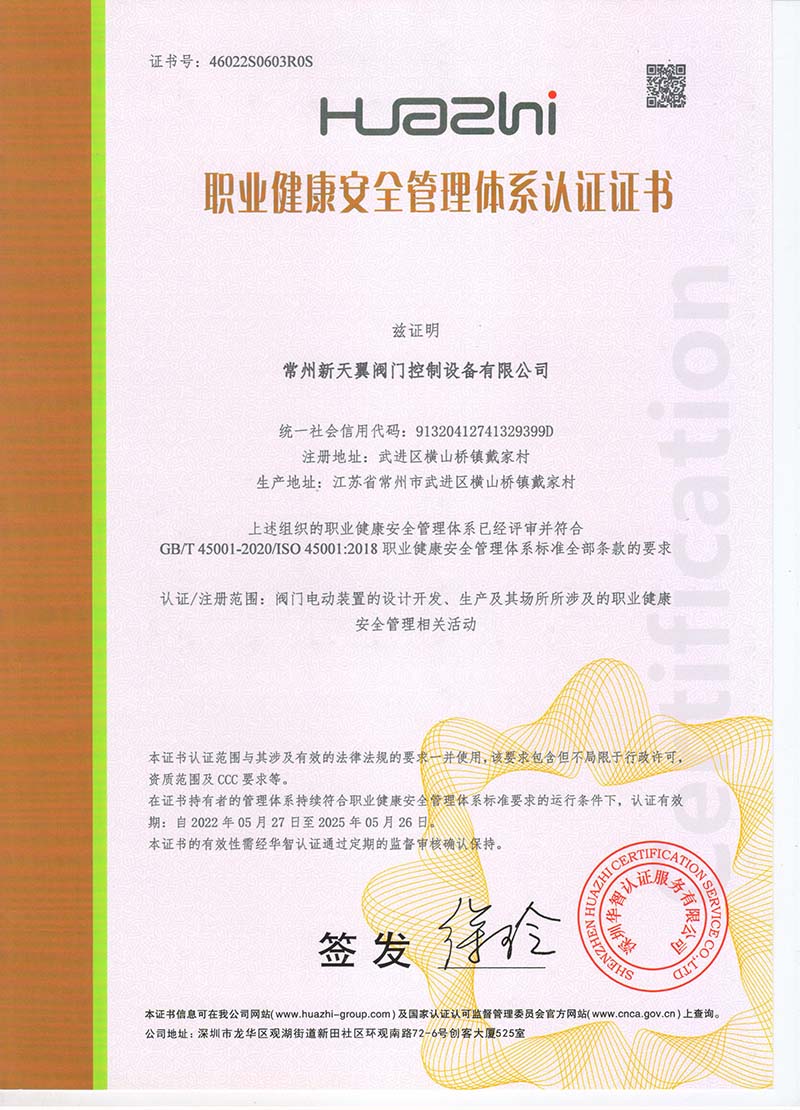 職業(yè)健康管理體系認(rèn)證證書 英文版